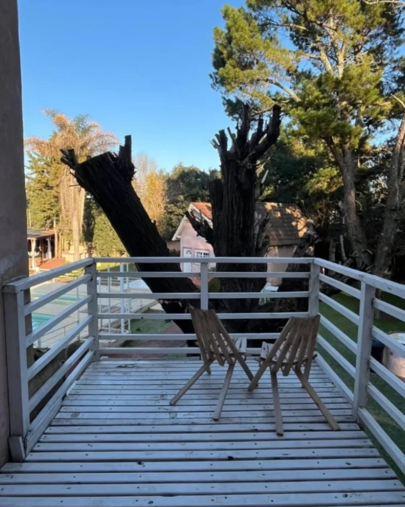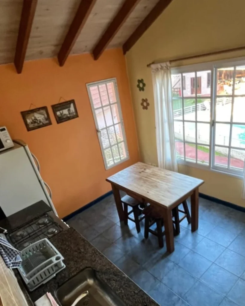 Un espacio cómodo y luminoso, perfecto para grupos que buscan disfrutar de la tranquilidad de la naturaleza sin resignar confort. Desde el balcón se puede contemplar el parque, y la parrilla privada asegura momentos compartidos en familia.