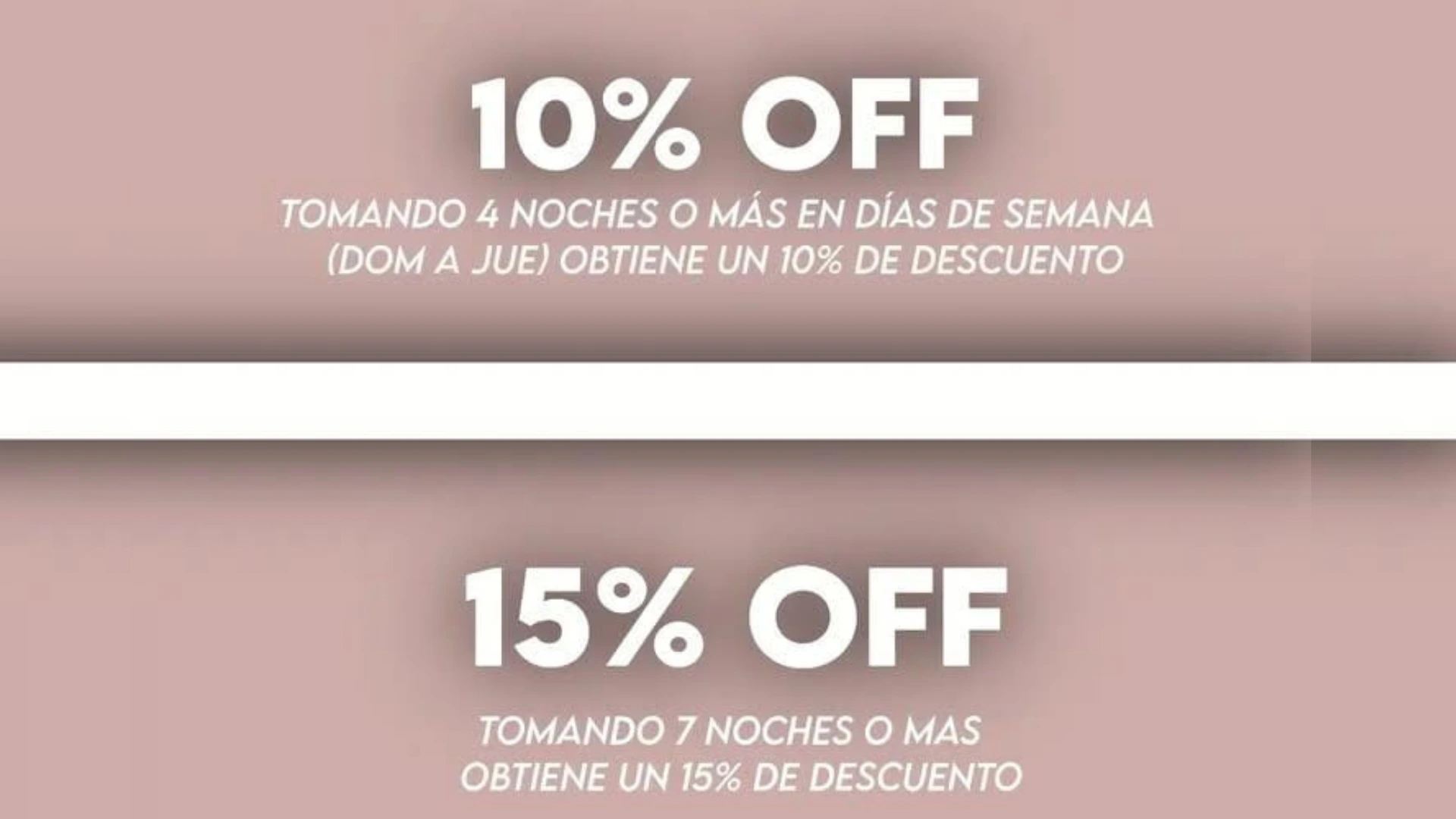10% de descuento en estadías de 2 noches o más de fin de semana (excepto fines de semana largos).